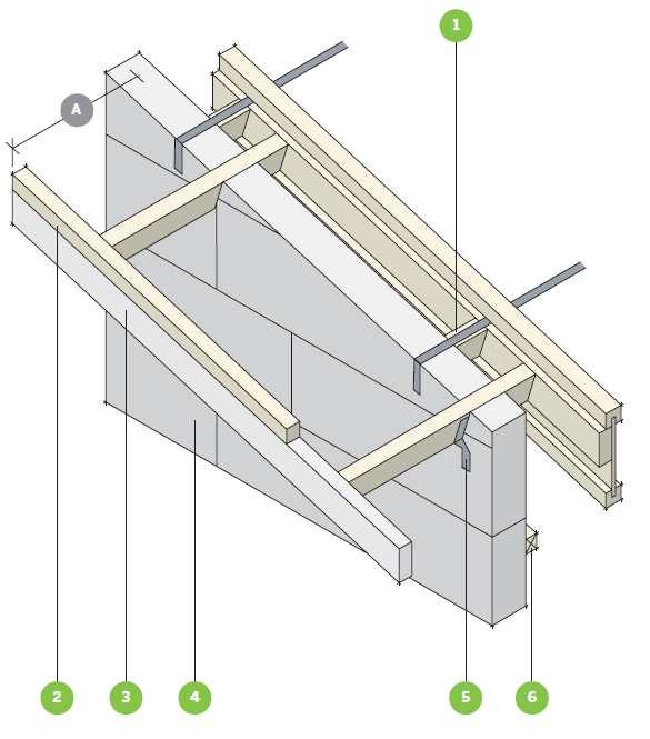 ![]() | Max overhang 600mm Strap beaded under the cut block when installing straps do not cut the flange Ladder fixed to web of FJI joist |