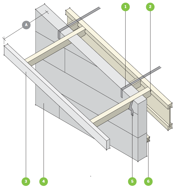 ![]() | Max overhang 600mm Strap beaded under the cut block when installing straps. Do not cut the flange. Ladder fixed to web of FJI joists |