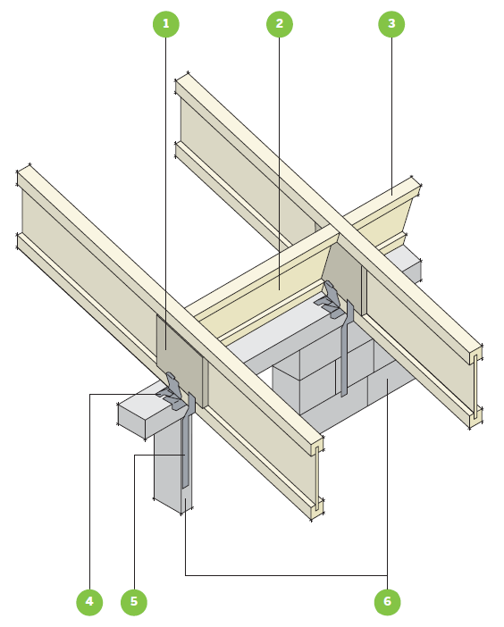 ![]() | Masonry or Timber frame internal load-bearing wallor dropped purlin |